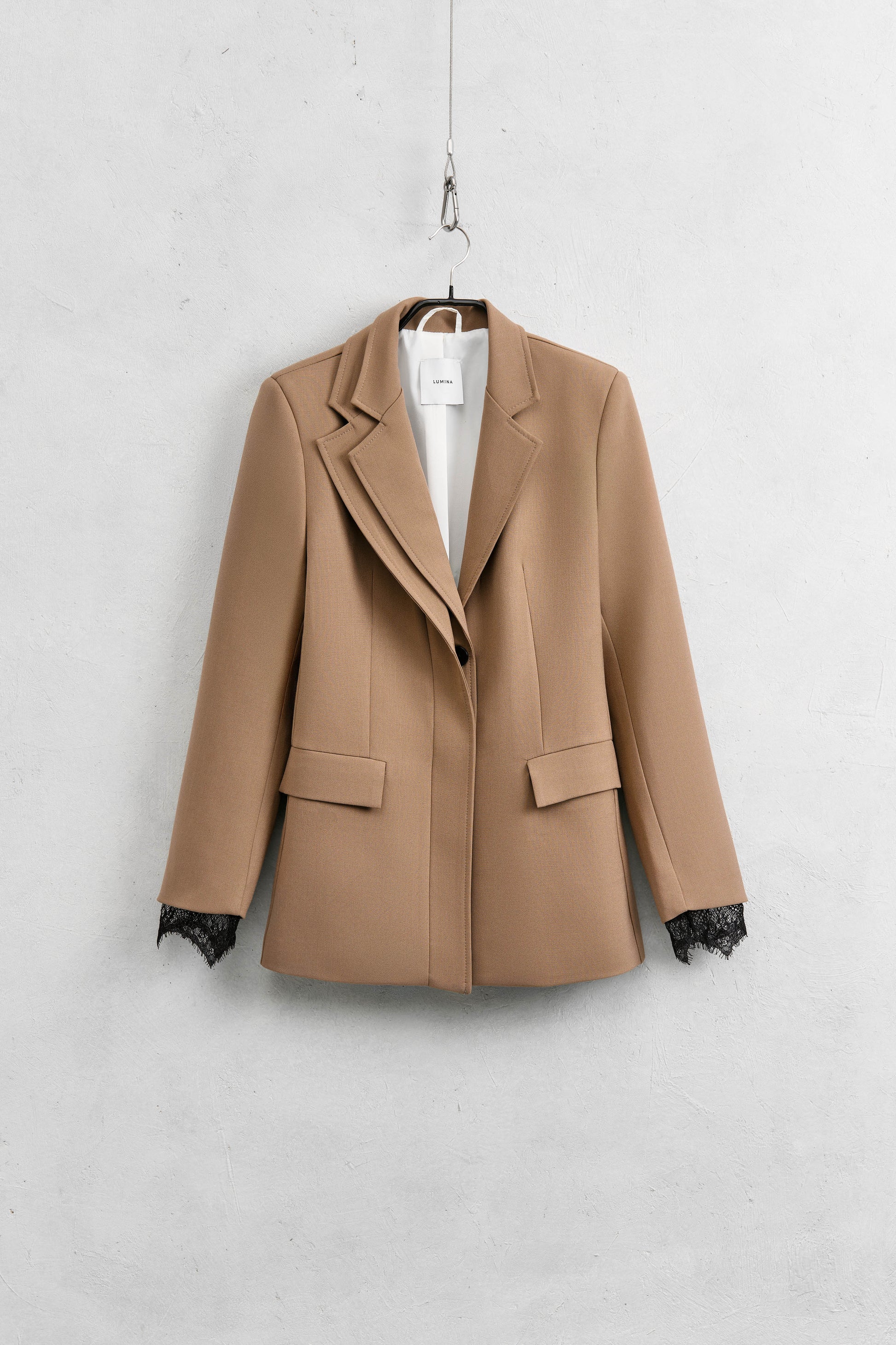 Pinces et poches à rabat. Fermeture boutonnée invisible. Bordure en dentelle aux poignets. Coupe classique, disponible en tailles S/M/L.